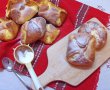 Se dă tava la cuptorul preîncălzit, la foc mediu cam 5 minute, ca să se umfle, apoi se dă focul mic, pentru a se coace bine şi înauntru şi se lasă până se rumenesc bine (aprox 20 de minute).