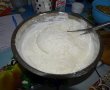 Crema : Intr-un castron de inox am pus zaharul si galbenusurile le-am mixat bine, apoi am adaugat amidonul si am continuat sa mixez, la final am diluat cu lapte si am pus castronul pe baie de abur, am amestecat continuu pana a incput sa se ingroase crema. Am tras de pe baia de abur castronul si am incorporat untul. Am acoperit castronul cu folie alimentara si l-am dat la rece.Dupa ce sa racit bine am adaugat 2 linguri pline cu frisca si am mixat.