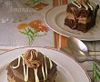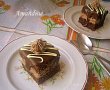 Blat: Ouale se separa, albusurile se bat spuma tare. Galbenusurile se amesteca cu zaharul, zaharul vanilat, uleiul si apa si se bat cu mixerul pana isi dubleaza volumul. Ideal e sa se bata pana se topeste zaharul. Peste galbenusurile batute adaugam faina amestecata cu cacao si praful de copt. Amestecam cu mixerul. Compozitia e destul de vartoasa insa va deveni pufoasa de la albusuri. Lasam mixerul deoparte si adaugam albusurile batute, amestecand cu lingura de jos in sus. Turnam compozitia intr-o tava tapetata cu hartie de copt si punem in cuptorul incalzit in prealabil. Coacem blatul pana trece testul cu scobitoarea. In general 30-35 minute. Il lasam apoi la racit.
