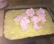 Blatul racit il taiem in 2. Insiropam prima parte, adaugam crema de coacaze, adaugam cealalta parte de blat ( o isniropam si pe aceasta) si adaugam crema de ciocolata.