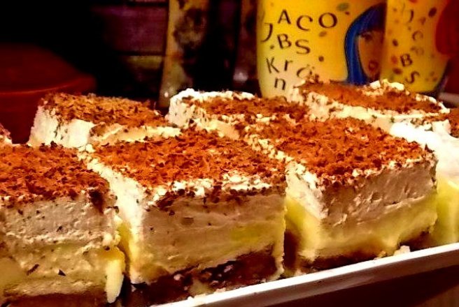 Am vazut reteta undeva pe fb si mi-a placut tare mult...am schimbat cate ceva pe la ea...nu am folosit praful de budinca, ci am facut eu crema de vanilie..este delicioasa!