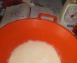 Într-un alt vas, se vor pune: laptele, zahărul, mirodenii si făina, se amestecă un pic pentru dizolvarea zahărului, după care se pune pe foc si se lăsa până se va forma o consistența cremoasa (amestecând cu un tel), se da deoparte, se lasa să se răcească un pic, după care se adaugă unul.