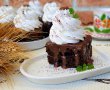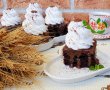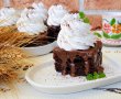 Se mixeaza frisca si se orneaza fiecare prajitura cu ea, apoi se decoreaza cu fulgi de ciocolata si cacao.