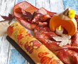 Sfat: Dacă ți-au rămas culori (aluat colorat), poți să mai desenezi ceva pe ruladă, se va vedea frumos când vei tăia din ea și musafirii vor rămâne surprinși și bucuroși să descopere alte desene în interior.