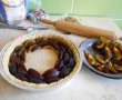 Între timp se pregătește umplutura: prunele se spală, se șterg de apă și se taie în sferturi.
