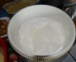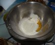 Blat : Mai intai am pregatit forma de tort, am tapetat-o cu hartie de copt, am folosit o forma cu diametrul de 17 cm. Am mixat albusurile cu un praf de sare , apoi am adaugat 3 linguri de zahar si am continuat sa mixez pana am obtinut o bezea ferma.Separat am mixat galbenusurile cu 2 linguri de zahar pana si-au dublat volumul, apoi am adaugat cacao, am omogenizat. Am adaugat o parte din bezea si am amestecat cu miscari lente de jos in sus, dupa care am incorporat faina, nuca macinata si restul de bezea, folosind miscari lente de jos in sus. Am pus compozitia in forma de tort. Am dat forma la cuptorul preincalzit la 180 grade. Este gata cand trece testul scobitorii. L-am scos din cuptor si l-am lasat sa se raceasca bine.