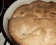 Printre mere indopate asezam bucatele de unt, apoi turnam aluatul obtinut si dam la cuptor cca 40 minute, pana se rumeneste usor.Lasam 2 minute sa respire, apoi il intoarcem cu grija pe un platou (trbuie rasturnat fierbinte datorita caramelului ) si ul pudram putin cu scortisoara. Lasam sa se raceasca bine, apoi il ornam cu frisca din abundenta.