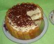 Intr-o forma de tort cu inel detașabil (23cm), asezam la baza si pe margini pișcoturi insiropate in cafeaua amestecata cu lichiorul tiramisu. Punem jumatate din crema de mascarpone, inca un strat de pișcoturi insiropate și apoi restul de crema. Pudram cu cacao.