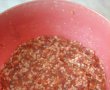 Se rade ceapa si se adauga peste carnea tocata. Se pune si orezul impreuna cu condimentele ( sare, piper, boia) si se amesteca.