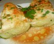 Se amesteca miezul de dovlecel calit cu cus-cusul si 150 g cascaval, se umplu dovleceii cu compozitie atat cat sa faca burtica, dupa care se presara cascaval ras .