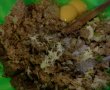 Dam jos carnea de pe os si il dam pe robot sau prin masina de tocat.Dam si ficatul pe robot.