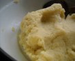 Se pun pe foc apa si margarina si se fierb pana dau in clocot.Cand fierb se adauga faina in bloc(toata deodata) si se amesteca energic pana se formeaza o bila de aluat.Se lasa la racit.Cand este complet rece se adauga ouale pe rand(nu se adauga cel de-al doilea pana nu este inglobat primul)si devine un aluat lipicios.
