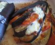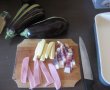 Acum este timpul sa impanam vinetele , punem pe fiecare felie de vanata aleator sunca , prosciutto crudo, usturoi , cascaval , felii de rosii .