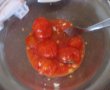 Cand este moale (s-a copt) punem deasupra restul de cascaval felii sau razuit (eu l-am pus felii) si mai dam 2-5 minute la cuptor.