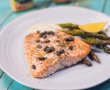 Un file de somon la cuptor cu capere si un sos de mustar e ideal pentru o cina romantica. Noi i-am pus langa un sparanghel, dar merge foarte bine si cu cartofi.