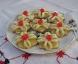 Se pudreaza cu zahar si se decoreaza cu cate o cireasa confiata in mijlocul fiecarei flori.
