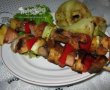 Am inceput sa montez frigaruile in functie de preferinte ... unul vrea cu ceapa, altul fara ... etc:), alternand insa legumele si carnea.