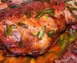 Din cand in cand se intoarce si se unge friptura de miel cu sosul din tava.