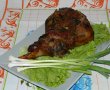 Cand este facuta se pune si usturoiul taiat marunt si se mai introduce 5 minute la cuptor ungand cu sosul din tava.