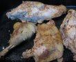 Apoi trecem carnea intr-o tava cu putina grasime, o condimentam cu sare, piper si boia de ardei dulce, apoi o dam la cuptor, la 190 de grade, pentru 35 de minute, sau in functie de cuptor, pana cand carnea se rumeneste bine.