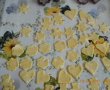 se intinde o foaie si se decupeaza formele,se aseaza intr-o tava tapetata cu hartie de copt si se coc 8 min la 200 grade (sa fie incalzit cuptorul inainte)