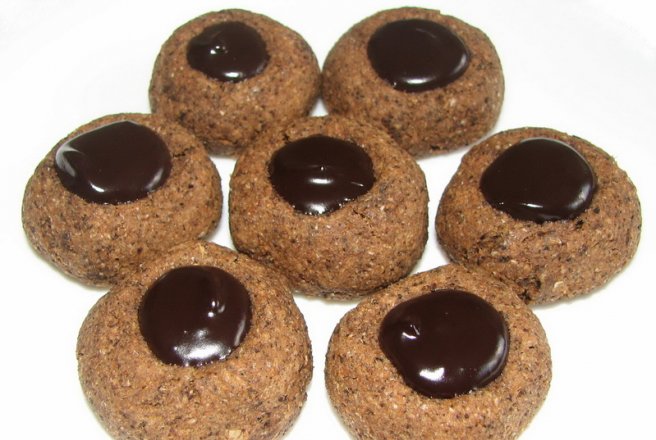 In mijlocul fiecarei bilute facem o gropita ( cu o coada de lingura de lemn rotunda). Dam la cuptor pentru 30 de minute. Mie mi-au iesit doua tavi din aceaste cantitati.
