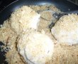 In restul de unt se prajeste pesmetul, zaharul,vanilia, ptr 5 min sau pana capata o culoare aurie.