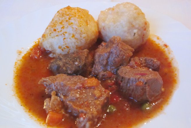 Intre timp se pune la fiert apa cu putina sare, intr-o oala incapatoare. Din amestecul de cartofi se formeaza galuste, care se pun la fiert in apa clocotita, se lasa la fiert la foc mic , pana se ridica la suprafata. Se scot in strecuratoare si se lasa la cald pana se aduc la masa.