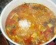 Daca legumele nu au lasat destul sos , adaugam o canita cu apa si lasam legumele sa fiarba cam 15-20 de minute, apoi adaugam orezul spalat.