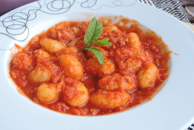 - Gnocci proaspete se fierb conform instructiunilor de pe ambalaj si le strecuram si adaugam in sos. Servim cu mult parmezan ras si busuioc verde tocat la final.