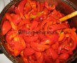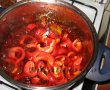 Se prepara sosul amestecand ingredientele de mai sus si se fierbe 20 de minute, amestecand din cand in cand. Va recomand o oala mai inalta si incapatoare, sa nu sara sosul.