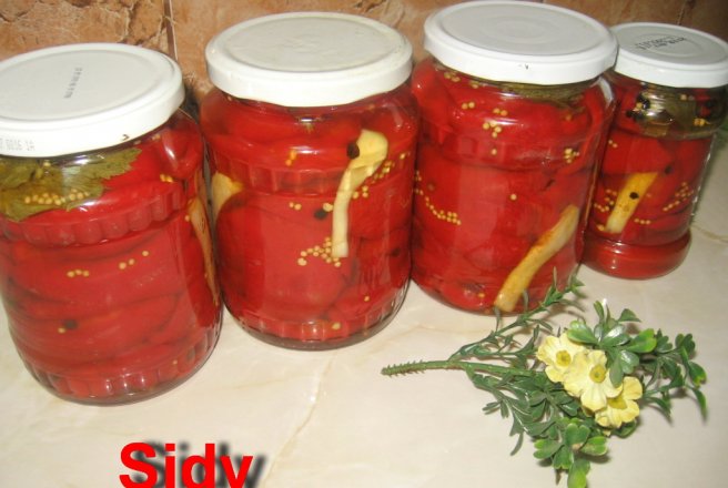 Intr-un alt bol amestecam bine otetul, sarea, zaharul, 3 linguri rase de boabe de mustar si 2 cu piper boabe, pina se topeste zaharul si sarea.Cine doreste poate adauga si 2 linguri de ulei de masline.