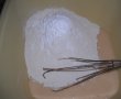 Adaugam iaurtul cu esenta de vanilie,sarea,untul topit cald,coaja de lamaie si omogenizam toate ingredientele.