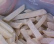 Intre timp se curata cartofii se taie betisoare si se prajesc in ulei sau la fripteuza Tefal actyfry, fara ulei.