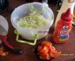 Taiem chifla pe jumatate asezam bucata de carne ,cartofi prajiti ,salata de varza ,ketchupul, maioneza , rosia si castraveti murati taiati felii subtiri