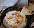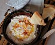 Daca nu aveti fasole gata fiarta, spalati fasolea, o puneti la inmuiat in apa rece cateva ore, apoi o puneti la fiert intr-o oala sub presiune. Scurgeti fasolea si o lasati sa se raceasca. Punem semintele de susan intr-o tigaie uscata la foc si amestecam ocazional pana semintele se rumenesc usor. Scoatem semintele intr-un castron si le lasam sa se raceasca, apoi le macinam. Taiem usturoiul felii. Punem fasolea intr-un vas inalt, adaugam susanul, sarea, piperul, usturoiul, zeama de lamaie,uleiul si cu ajutorul unui blender vertical o transformam intr-o pasta fina. Punem pasta intr-un castron,iar deasupra decoram cu boiaua si putin ulei de masline.