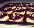 Topeste ciocolata cu frisca si untul apoi glaseaza fiecare prajiturica.