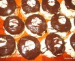 Asamblare: Am pensulat cu sirop jumatate din blaturi si le-am acoperit mai intai cu crema de ciocolata,apoi cu crema de mascarpone. Celelalte blaturi,le-am pensulat pe partea de dedesubt,le-am asezat pe un gratar si le-am imbracat frumos cu glazura de ciocolata.Am luat cu maaare grija capacele ciocolatite si am "capacit"prajiturile.Deasupra le-am pus un mot de crema si le-am "biciuit" cu ciocolata ramasa:)