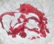 Tapeteaza o forma cu inel detasabil(20 cm am avut eu) cu folie. Pune crema de zmeura,acopera bine cu folie si baga la congelator pentru 1 ora si jumatate.