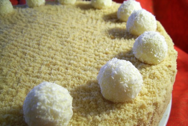 Pentru decor am facut o portie de bomboane Raffaello, folosind nuca de cocos, ramasa de la crema.