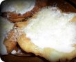 Buuun, dupa ce am impartit aluatul, am format cate o "gogoasa" mai mare si am prajit-o in ulei incins (se prajeste repede, cam 3-4 min total, si se umfla putin). Apoi am pus smantana si am presarat cascaval (reteta originala prevede si putin marar si patrunjel proaspat presarat peste cascaval, dar eu n-am avut)
