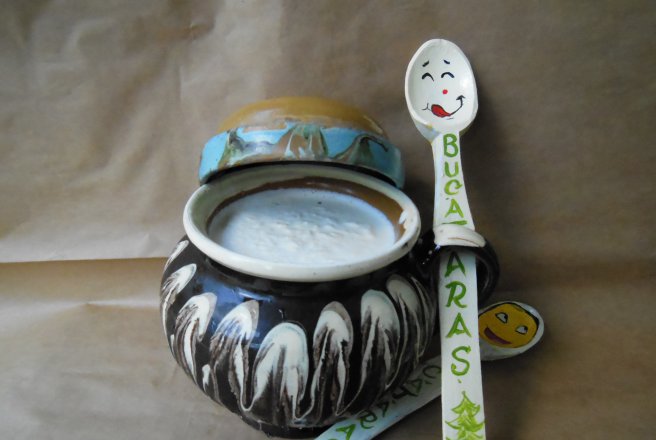 Mai intai fierbem laptele si-l lasam sa se raceasca , apoi luam o oala de lut, punem smantana si incepem sa turnam laptele, amestecand bine sa se dizolve smantana. Umplem oala cu lapte , asezam un capac deasupra si dam oala pe balcon la soare sau in bucatarie. Apoi asteptam sa se prinda si sa mancam cu mamaliguta calda, un deliciu....