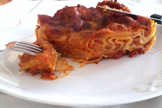 Luam o tava dreptunghiulara si o ungem cu unt.Pe fundul acesteia punem un strat de sos ragu si presaram parmezan ras dupa plac,apoi acoperim cu un strat de lasagne(eu am cumparat cele ce nu au nevoie de fierbere) pe care il acoperim cu un strat de sos bechamel,apoi sos ragu si dupa aceea parmezan ras.