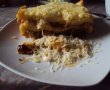 Se ia un vas de yena mic in care se pune un strat de foi, apoi unul de legume, iar unul de foi si unul de legume, iar deasupra o foaie. Se rade cascaval din belsug si se da la cuptor aproximativ 40 minute.