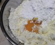Într-un bol pui brânza fărămițată, 4 gălbenușuri, zahărul măcinat și mixezi. Adaugi esențele și mixezi.