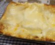 Peste ultimul strat de foi distribuim smantana si mixul de branza. Introducem vasul in cuptorul preincalzit pentru 45-50 de minute.