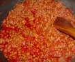 Mai intai pregatin ragu-ul.Curatam legumele si le taiem bucatele sau le bagam la robot(asa vor iesi mai fine).Incalzim cateva linguri de ulei intr-o oala,adaugam legumele si lasam putin sa se caleasca.Cand legumele s-au calit,adaugam si carnea tocata si o mestecam bine.Lasam pana carnea s-a schimbat la culoare,apoi stingem cu paharelul de vin.Lasam sa se evapore vinul,adaugam sucul de rosii,sarea,piperul si lasam la fiert la foc mic pentru circa o ora.