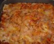 Asamblez lasagna astfel:Ung o tava patrata cu unt,pun un strat subtire de sos amestecat cu o lingura de ragu,apoi asez deasupra foile de lasagna(eu nu le oparesc inainte,dar daca vrei puteti sa le opariti cateva minute in apa sarata),un strat de sos amestecat cu ragu,presor parmezan din abundenta si tot asa pana fac 4 straturi.Ultimul strat e de sos amestecat cu ragu.Pun cateva bucatele de unt deasupra,parmezan si dau la cuptor la 200 grade pentru circa 30 minute.