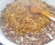 Trecem la umplerea matelor, formand lebarul, legam la ambele capete sa nu iasa umplutura. Se pune tuciul cu zeama in care au fiert, pe foc, se pun bucatile de lebar la fiert. Se lasa pana cand incepe sa dea apa in clococ, se scot si se lasa la racit.