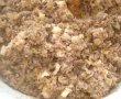 Mai intai punem la fiert organele, intr-un tuci incapator, adaugam sare in apa in care fierb, nu foarte multa. Cand au fiert se lasa sa se raceasca bine, dupa ce au fost scoase din zeama in care au fiert, e recomandat de pe o zi pe alta. Zeama in care au fiert nu se arunca. Se dau organele la masina de tocat, sunca de la gusa se taie cubulete mici. Se curata ceapa, se taie marunt si se caleste, pana se inmoaie bine. O lasam sa se racoreasca putin si apoi o punem peste tocatura de organe si sunculita taiata cubulete. Se omogenizeaza, se condimenteaza.